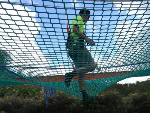 Nets are made of knotted polyethylene (HDPE) hence is UV resistant. HDPE nets are chemically inert, water and weather proof. It has high breaking strength. Nets are fixed using stainless steel wire framework and hardwares. For Further specifications, the nets are fixed using wire rope, net bolts, screw pins, barrel strainers and hogging staples .This helps tight installation of nets that cannot be stretched, giving it a strong, clean & beautiful appearance.